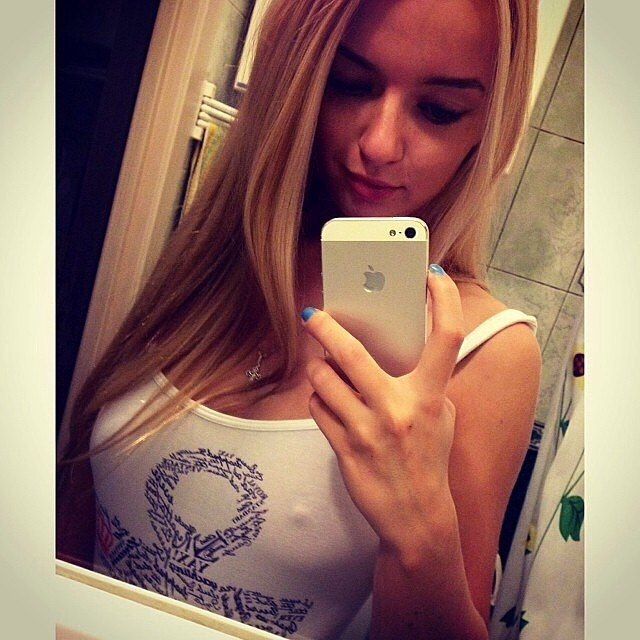 Сексуальная блондинка Кайден Кросс обнажает свои твердые сиськи и длинные соски для селфи