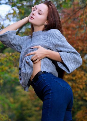 Описание: Медленно и немного стеснительно стянув перед камерой всю свою одежду, молодая обнаженная детка с красивой упругой попкой и миниатюрными титьками светит своими прелестями в лесу и, лежа голышом на земле, с разных ракурсов раскрывает промежность с гладкой нежной писей.