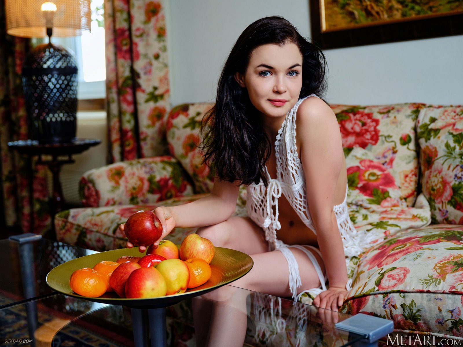 Описание: Соблазнительно медленно избавив свое стройное тело от просвечивающего откровенного наряда, голая шалунья с раскрытой бритой писькой бесстыже разлеглась перед нами на диване с широко раскинутыми ногами и крупным планом предлагает нам полюбоваться ее самыми интимными сладкими местечками.