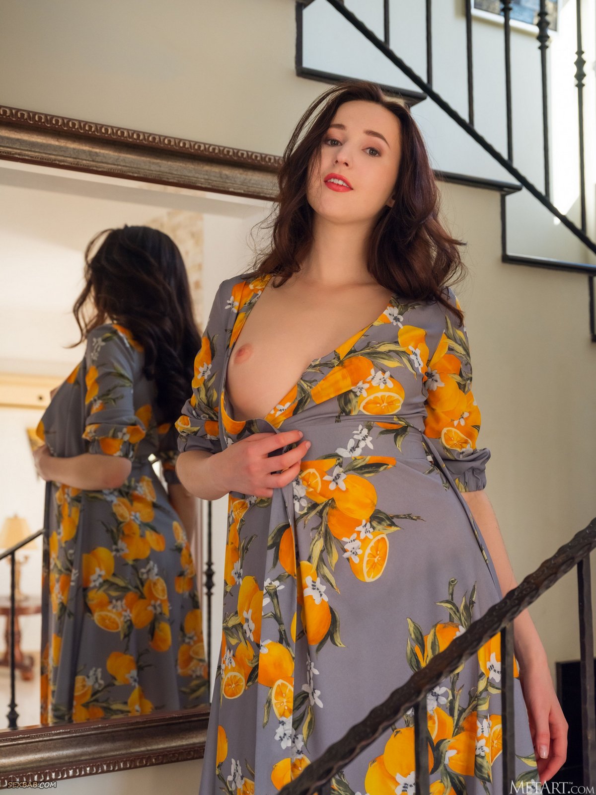 Описание: Медленно спускаясь по лестнице и остановившись у большого зеркала, аппетитная телка в распахнутом платье и черных трусах игриво разделась перед камерой до гола и, раскрыв голую бритую промежность крупным планом, во всей красе показала нам свою красивую розовую пиздёнку.