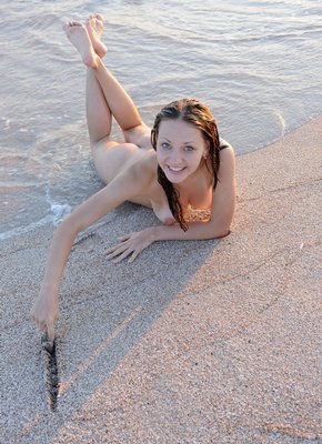 Описание: Страстно сорвав с себя промокшее платье без белья, мокрая телка весело развлекается на пляже голышом, эротично позируя на горячем песке и плавая в теплом море. Голая брюнетка с натуральными сиськами не стесняется показать себя во всей красе и с удовольствием выпячивает на камеру свою сочную упругую задницу с бритой мясистой пиздой.