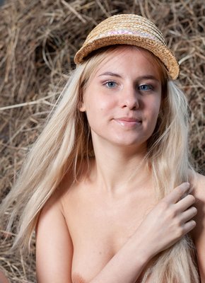 Описание: Энергично стянув с себя короткое летнее платье, простая деревенская девка открыто показывает нам свое стройное молодое тело и эротично позирует на сеновале. Голая блондиночка с аккуратными упругими титечками бесстыже высоко задирает перед камерой ноги, с разных ракурсов засвечивая свою бритую письку.