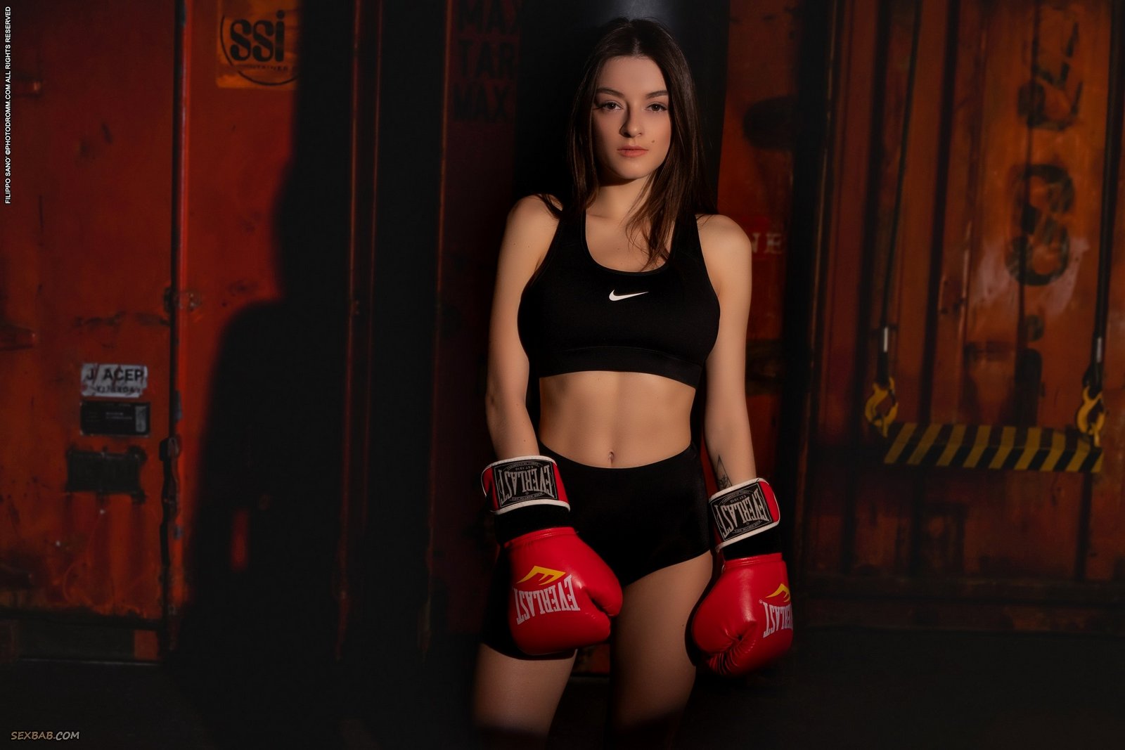 Описание: После выматывающего жесткого боя, потная спортсменка в боксерских перчатках высоко задрала свою обтягивающую майку и полностью оголила большие красивые буфера. Медленно раздевшись до гола, сексуальная горячая красотка с шикарными формами безумно эротично изгибается перед камерой, засвечивая свою аппетитную попу с гладкой писей.