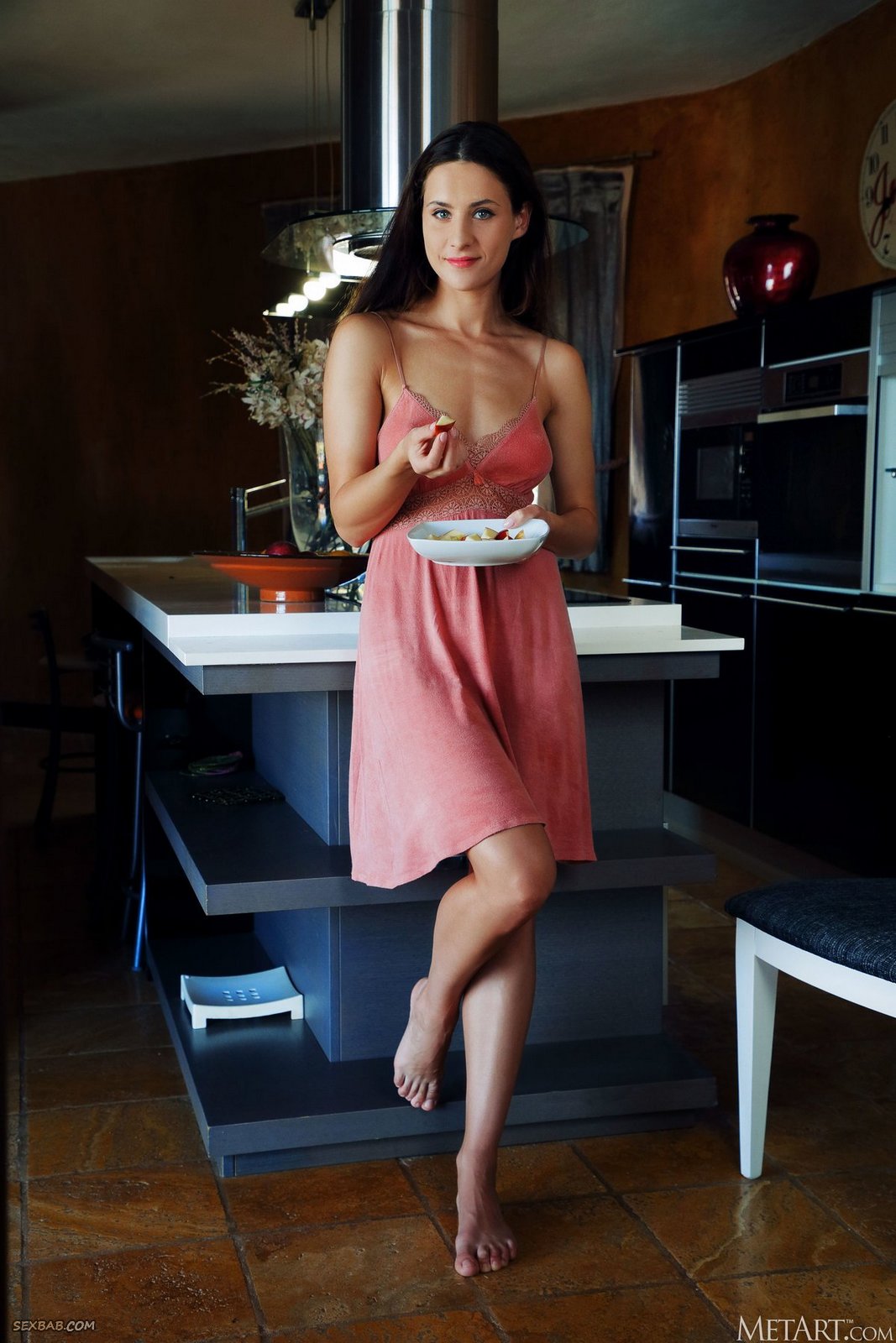 Описание: Закончив готовить еду, сексуальная домохозяйка соблазнительно играется перед камерой со своим легким платье без белья и эротично разделась до гола на большой кухне. Высоко задирая на стол свои длинные ноги, голая брюнетка с красивыми упругими сиськами развратно выпячивает крупным планом аппетитную жопку и возбуждающе играется со своей бритой нежной киской.