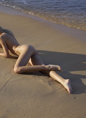 Описание: Изнывая от дикой жары, мокрая блондинка расслабленно лежит на горячем песке и бесстыже загорает голышом на берегу моря. Страстно извиваясь на пляже, обнаженная девица с маленькими титьками открыто демонстрирует свое худое тело перед камерой, развратно принимая разные соблазнительные позы с раскрытой бритой промежностью.