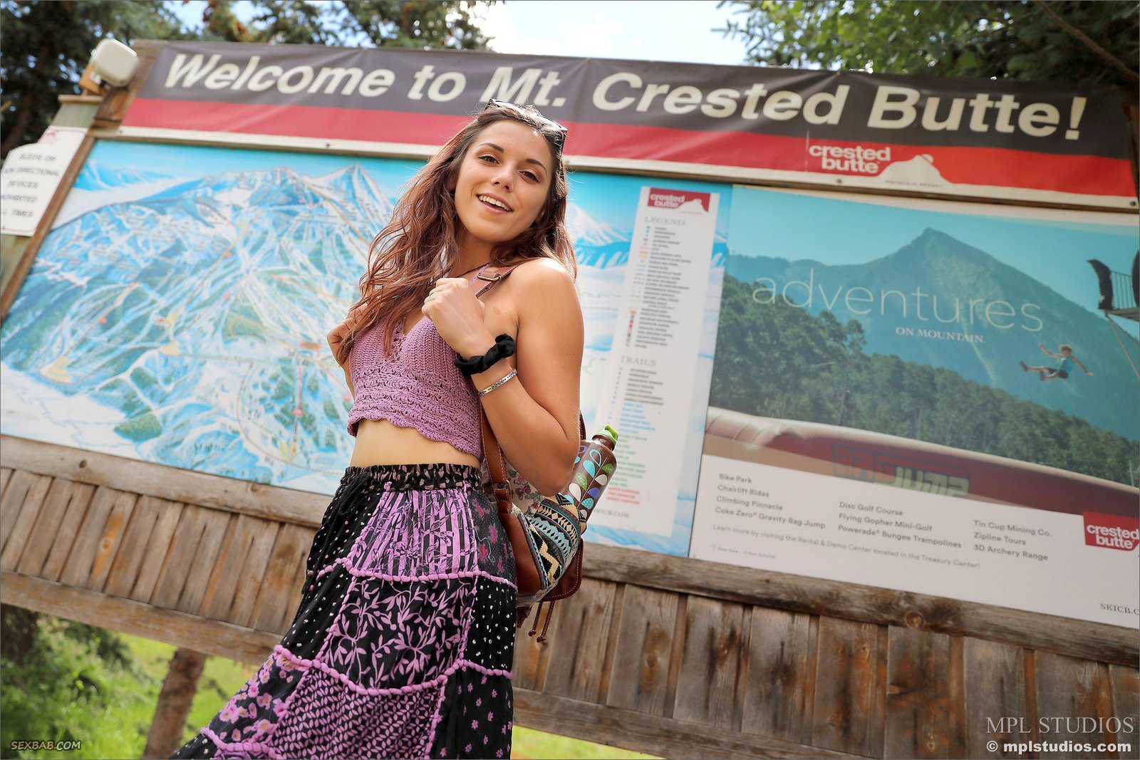 Описание: Невообразимо милая девушка отправилась на прогулку в национальный парк в горах, там она дразнит нас своими прелестями, то и дело задирая юбку и обнажая грудь. Сперва красавица позволила взглянуть на её красивые сиськи с аккуратными сосками, а затем показала сладкую попку в стрингах.