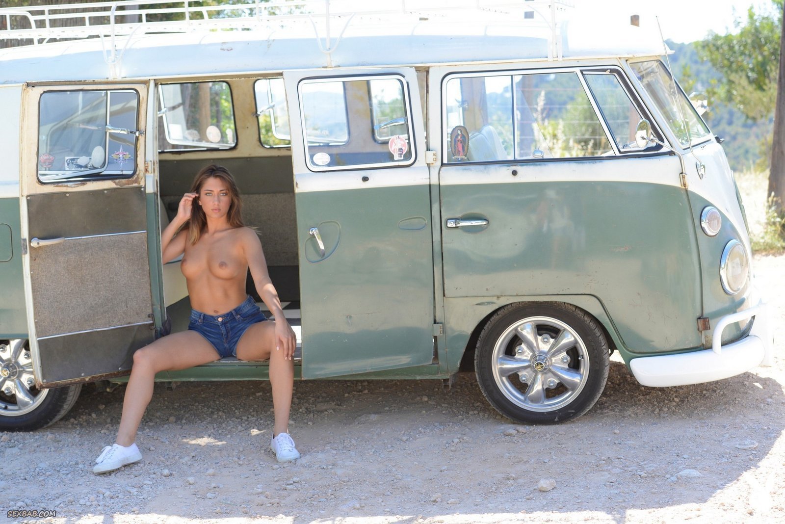 Описание: Ослепительно красивая девушка, модель журнала Плейбой разделась в старой машине, фургончике фольксваген. Стройная красавица похвасталась перед фотокамерой своими выдающимися формами - упругой грудью и аппетитной попкой с пышными, но в то же время аккуратными ягодицами. Но прежде всего остального, соблазняет томный взгляд модели, который способен покорить любого зрителя.