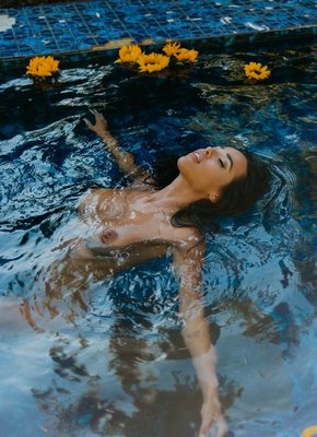Описание: Изнывая от дикой жары, сочная знойная мулатка с большой аппетитной попой медленно снимает с себя откровенный купальник и демонстрирует свои шикарные возбуждающие формы. Голая красотка с удовольствием ныряет в прохладную воду бассейна и расслабленно плавает, засвечивая на камеру свои большие натуральные сиськи и нежный лобок и интимной стрижкой.