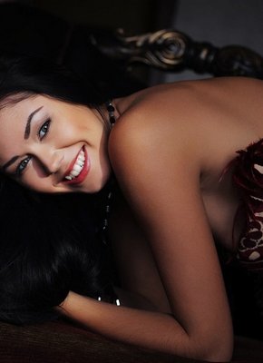Обнажённая брюнетка в полумраке