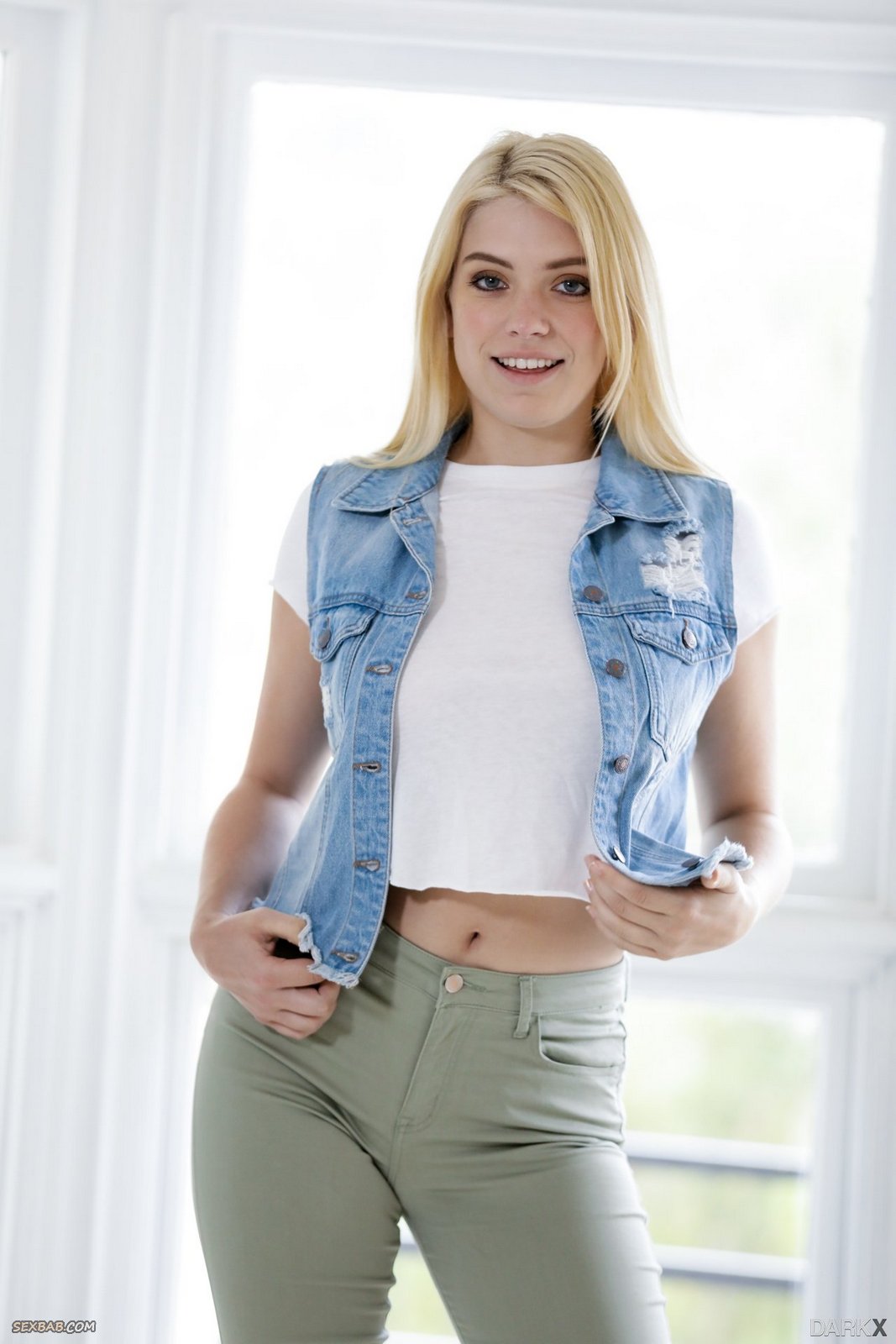 Описание: Соблазнительно сняв с себя короткую футболку, сочная блондинка с натуральными сиськами медленно раздевается до гола, игриво стягивая с себя обтягивающие штаны и белые кружевные трусики. Похотливая стерва с большой аппетитной задницей эротично принимает разные возбуждающие позы перед камерой и засвечивает свою волосатую мохнатую письку.