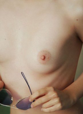 Описание: Обаятельная и полностью голая девица в очках улыбается и эротично позирует под лучами солнца, в процессе намочив ноги в бассейне. Таким образом сексуальная стройняшка с маленькой грудью засвечивала бритую письку с гладким лобком, а присаживаясь на стуле и поджимая коленки делала акцент на ягодицах.