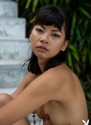 Описание: Обаятельная худенькая азиатка в трусах и кофточке, устроившись на лестнице, эротично позирует и в будущем медленно раздевается догола. Обнаженной сексуальная девушка валяется на ступеньках и с охотой акцентирует внимание оператора на её маленьких сиськах с гладко выбритой киской.