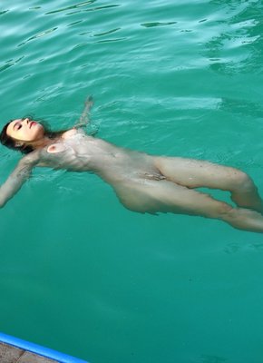 Описание: Молодая и невероятно красивая девушка с милой улыбкой медленно раздевается догола и эротично купается в бассейне, плавая на спине и делая акцент на торчащих сосочках. В процессе сексуальная стройняшка так же засвечивала мокрую бритую письку с гладким лобком и попку.