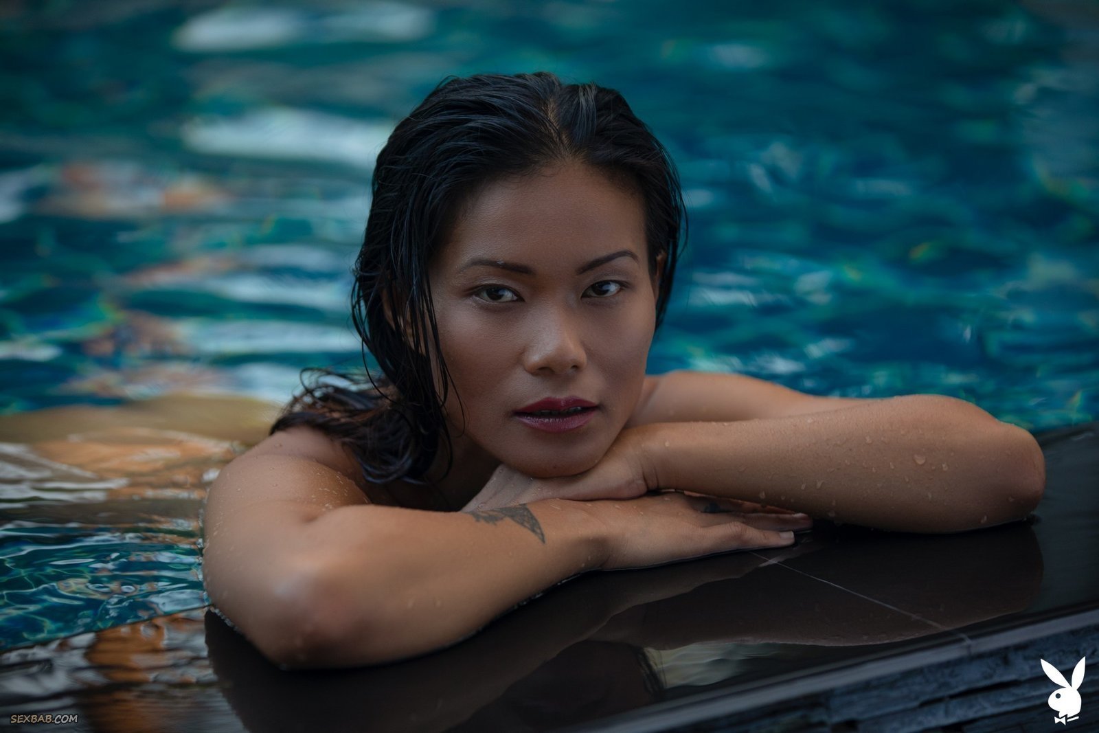 Описание: Обаятельная азиатская модель с худенькой фигурой, скинув с себя купальник, забирается в бассейн и плавает там, пока фотограф щёлкает её на камеру. Испытывая от происходящего приятные чувства, сексуальная девушка с натуральной грудью и торчащими сосочками в процессе поднималась из воды и делала акцент на гладко выбритой письке и животике.