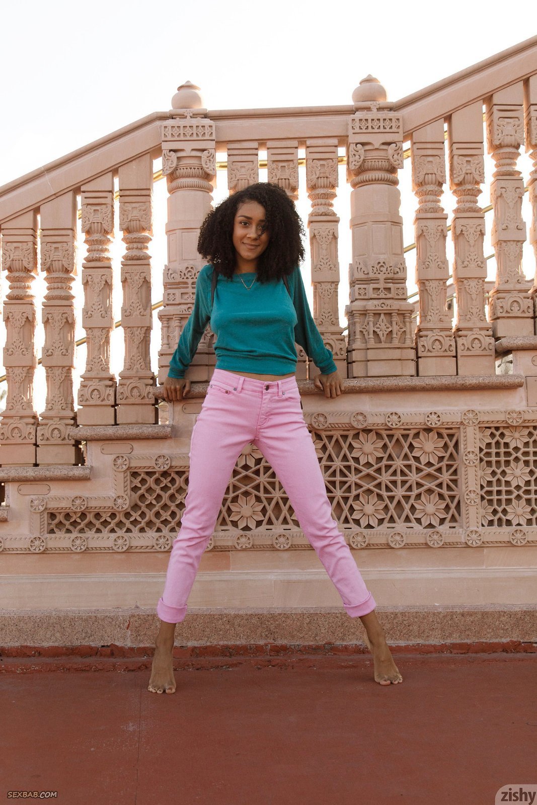Описание: Прогуливаясь в разных местах по улице, красивая негритянка наслаждалась теплым летним днем, а в какой-то момент решила немного порезвиться на камеру, и задрав кофту, она показала натуральные висячие титьки. Сделав это, молодая девушка продолжила свои шалости, в процессе мило улыбаясь и даже поворачиваясь к нам попкой в спущенных джинсах.