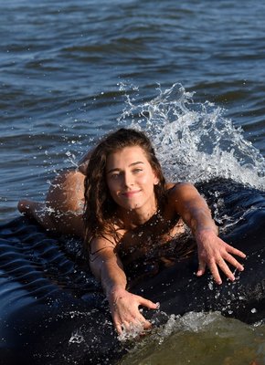 Мокрая девка сняла купальник на пляже