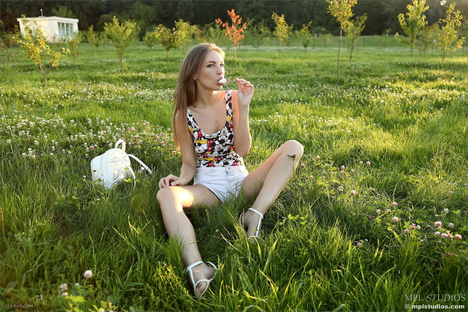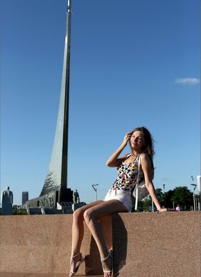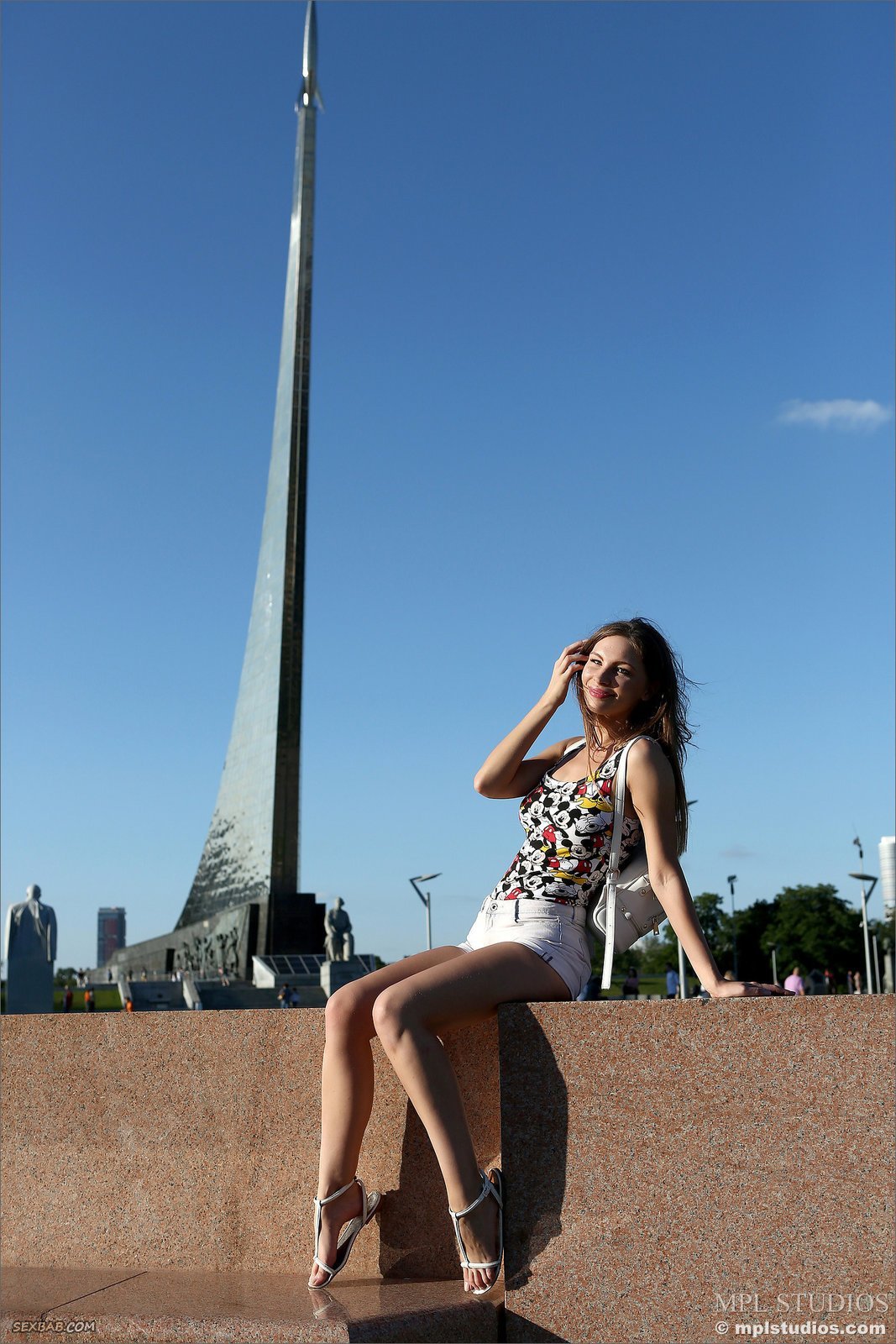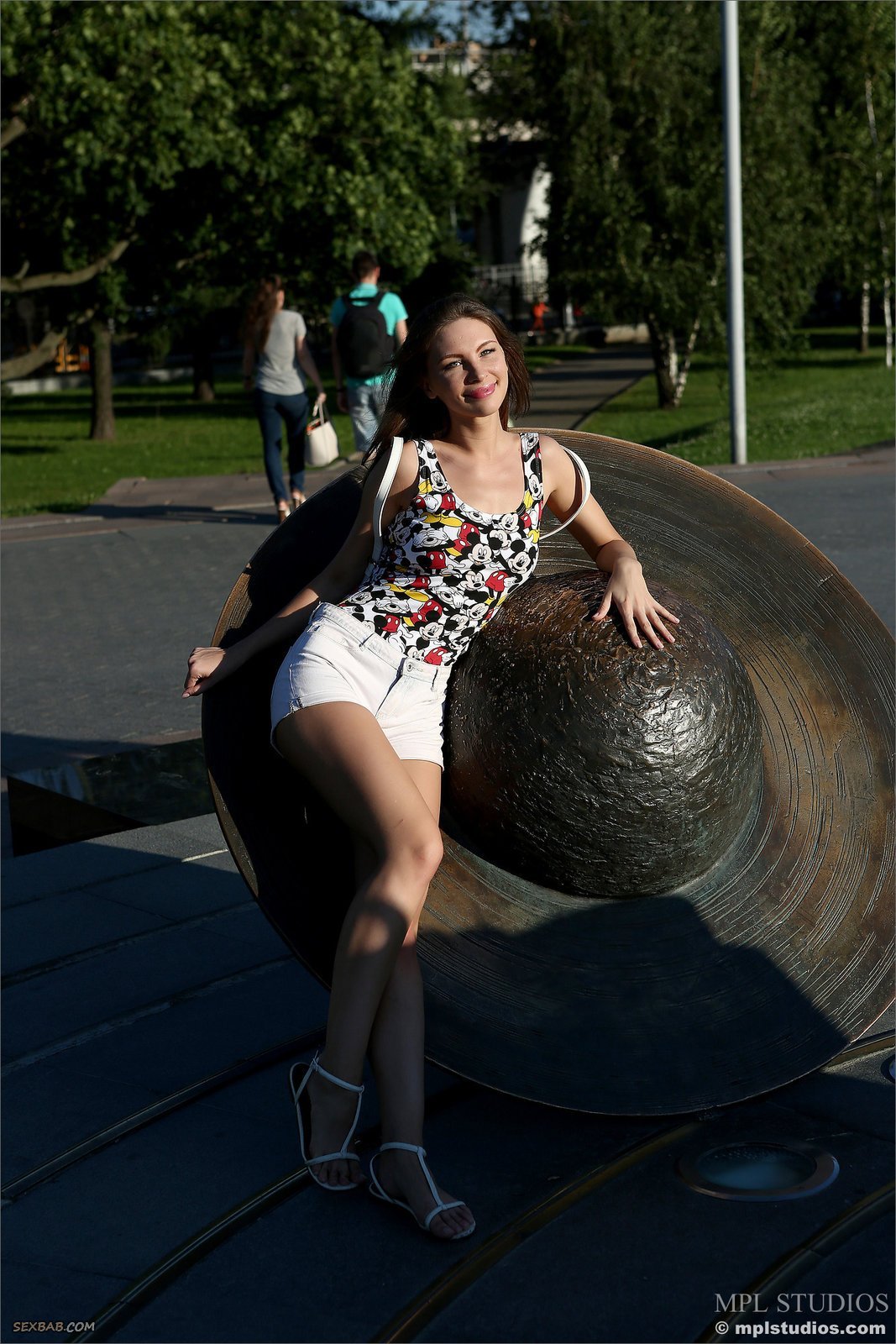 Описание: Накрасившись и надев короткие шорты с майкой, симпатичная молодая девушка со стройной фигурой и пышными губами отправляет гулять по городу, в некоторых местах задерживаясь и эротично позируя. Во время прогулки красавица не постеснялась и показала нам свою голую титьку с возбуждающим соском, которая очень соблазнительно выглядывала из под майки.