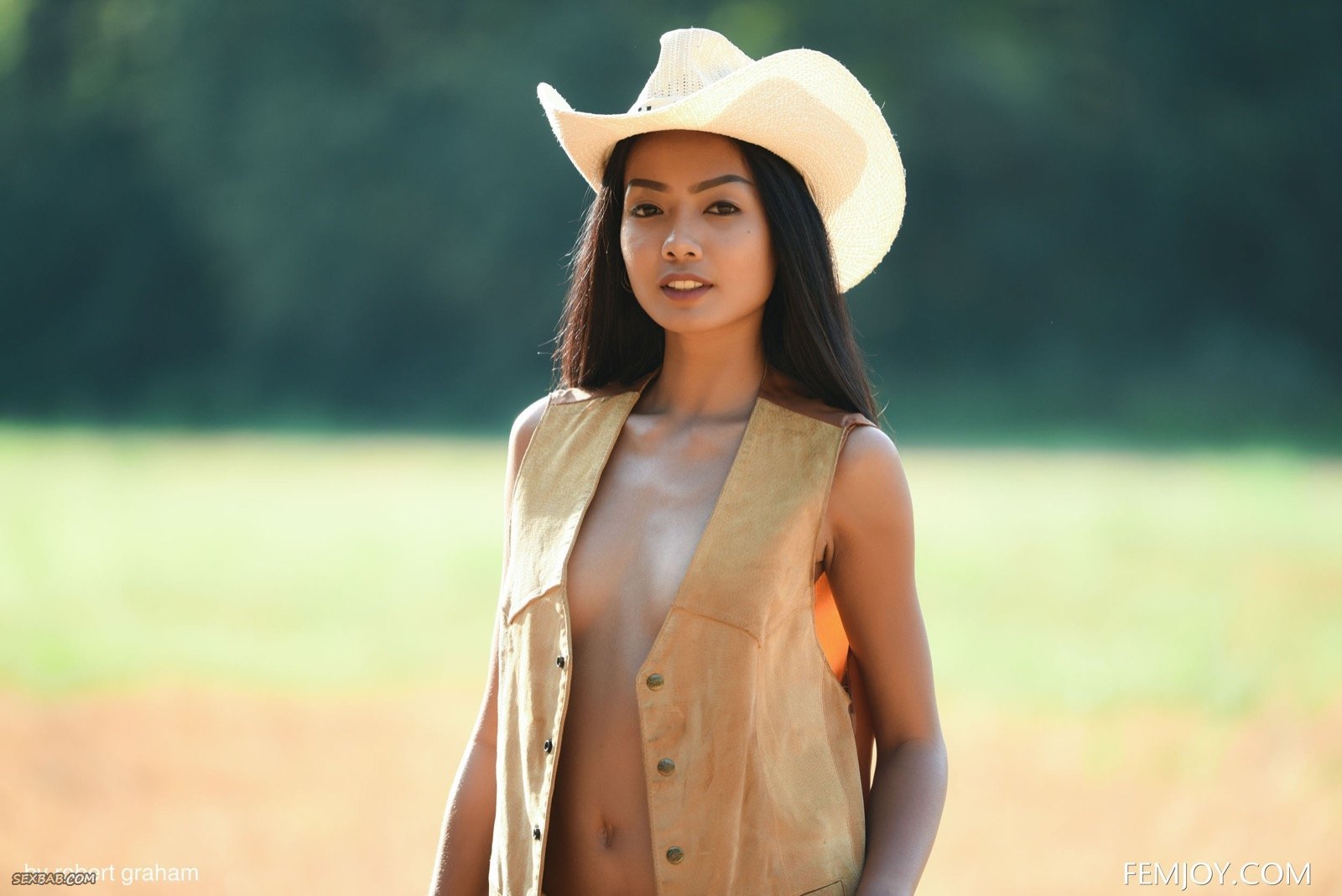 Описание: Скинув с себя короткие шорты и жилетку, худая юная тайка в ковбойской шляпе отправляется гулять на улице и голая наслаждается столь волнующим её действием. Оказавшись перед камерой сексуальная девушка с плоской грудью часто присаживалась на корточки и прогибалась раком, что позволяет крупным планом рассмотреть её бритую письку и тощую задницу.