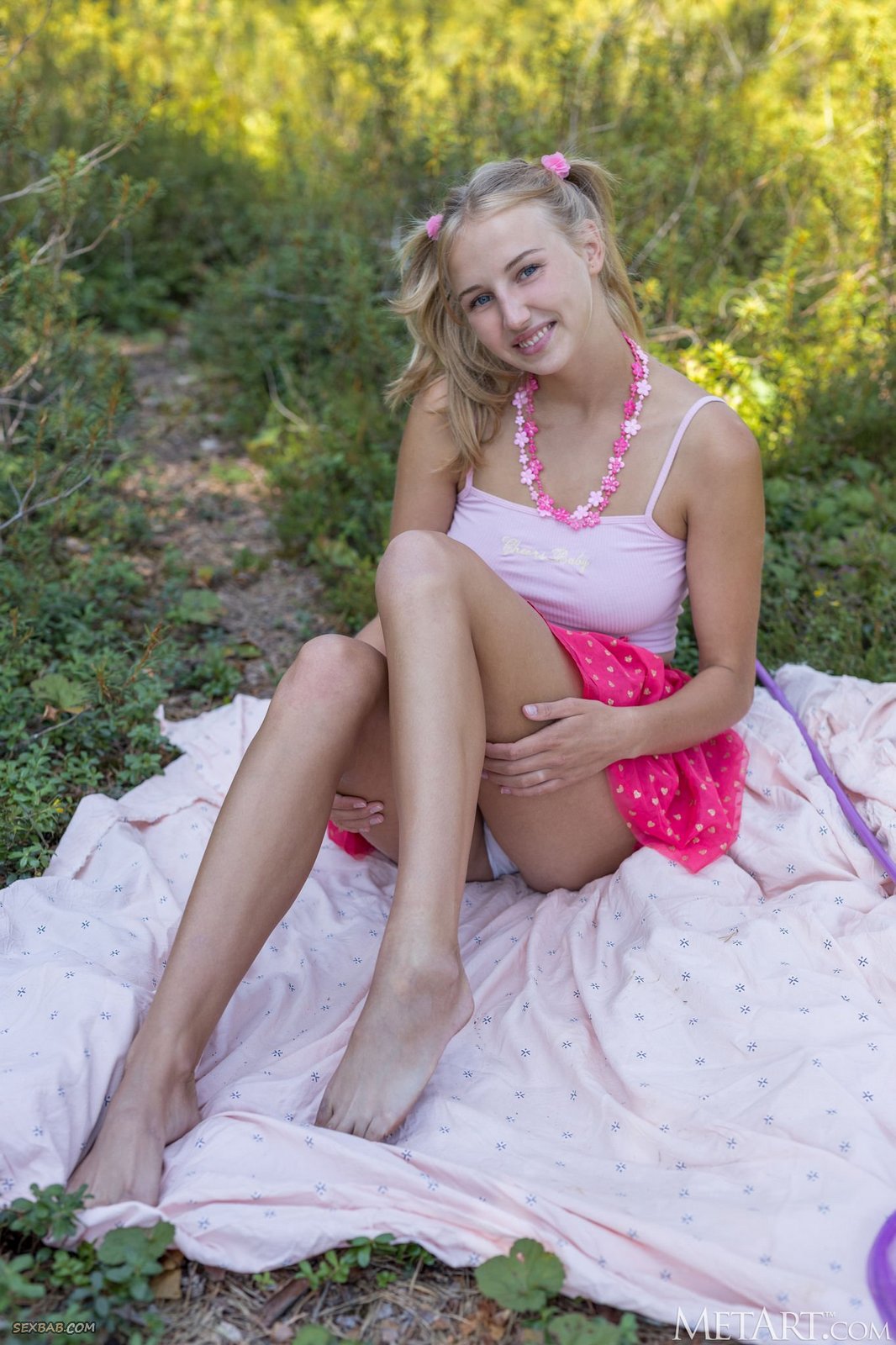 Описание: Устроив себе пикник на природе, развратная девица без трусов игриво задирает на себе короткую юбочку и возбуждающе светит под ней своей голой писькой. Постепенно раздевшись до гола, стройная блондинка с натуральными титьками энергично кривляется перед камерой и, лежа на земле в разных откровенных позах, демонстрирует нам свои самые интимные места.