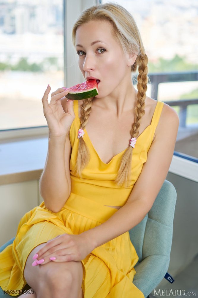 Описание: Кокетливо засвечивая под ярким желтым платьем свои розовые трусики, худая блондинка эротично разделась до гола у большого окна и показала всем свои плоские титьки с маленькими острыми сосками. Рассевшись на подоконнике с широко раздвинутыми ногами, бесстыжая потаскушка как можно ближе выпячивает на камеру свою бритую пизду, желая поскорей заполнить ее горячим твердым членом.