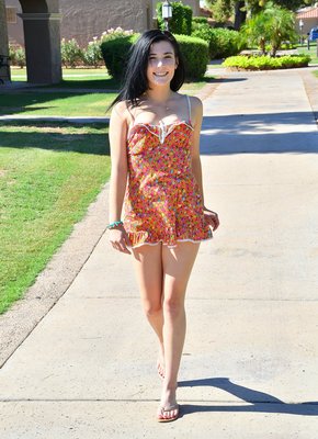 Описание: Прогуливаясь по улице, очаровательная брюнетка невысокого роста в сарафане принимается чередовать разные позы, засвечивая попку в трусиках под юбкой. В будущем молодая красотка возвращается домой, где медленно оголившись устраивается в постели и проникает в бритую письку необычными предметами, ощущая удовольствие и возбуждающе открывая рот.