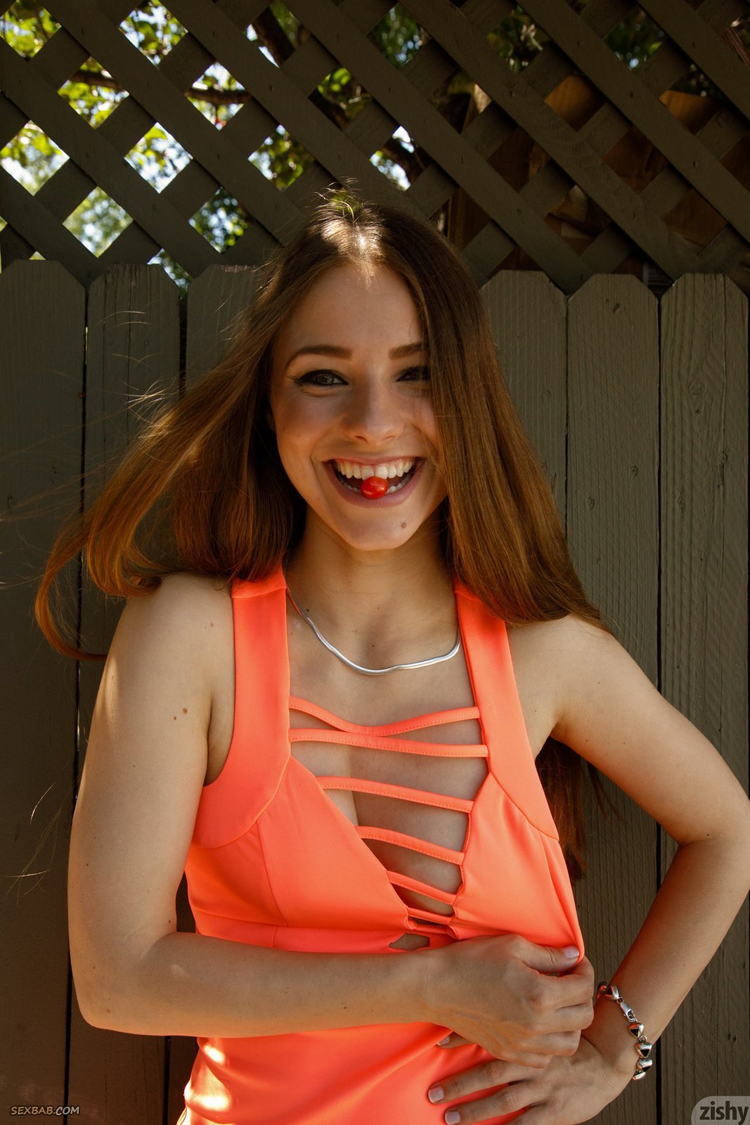 Описание: Очаровательная улыбчивая шатенка с худенькой талией в коротком платье и туфлях, прогулявшись на улице возвращается домой и засвечивает бритую письку. В процессе сексуальная молодая девушка так же демонстрирует попку и маленькие сиськи, раздеваясь для этого догола.