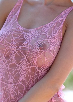 Описание: Забравшись на смотровую площадку, милая девушка в прозрачной розовой майке и без трусиков начинает эротично позировать, наслаждаясь свежим воздухом и широко улыбаясь. В процессе, присаживаясь на каменный бортик, очаровательная крошка с натуральными сиськами грациозно поднимала и немного раздвигала ножки, выставляя бритую письку.