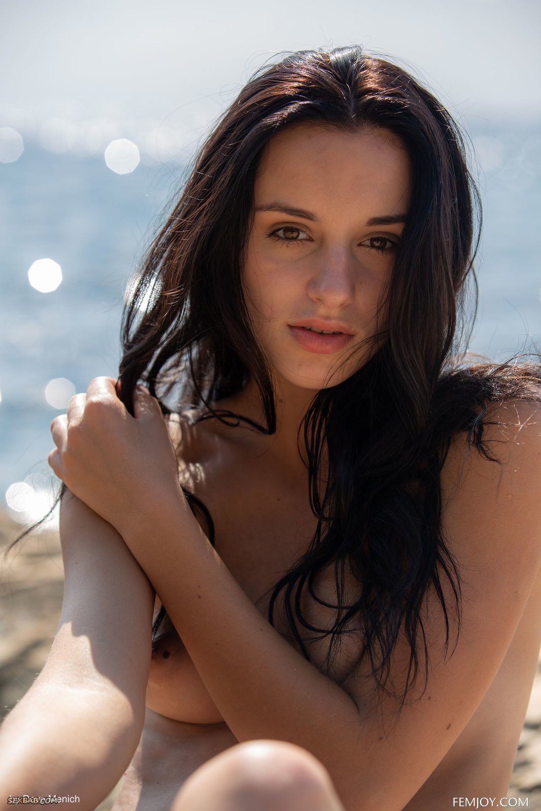 Описание: Добравшись до моря, молодая красавица не может удержаться от соблазна и снимает свой маленький черный купальник на камеру. Развратная девушка оголяет свои маленькие титечки с большими пухлыми сосками и бритый гладкий лобок, а затем эротично встает раком, демонстрируя также свою жадную до внимания киску.