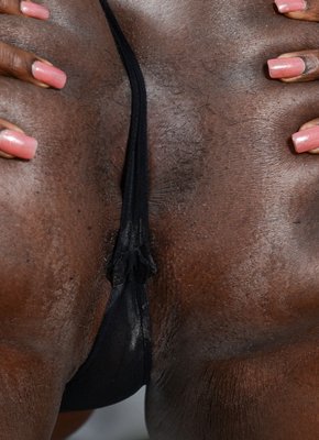 Описание: Улыбаясь на камеру, толстая негритянка снимает с себя облегающий купальник, выставляя на показ свои большие висячие сиськи, и показывает большую жирную жопу. Затем толстушка устраивается на диване раком и раскрывает свои пухлые ягодицы руками, открывая вид на черную промежность.
