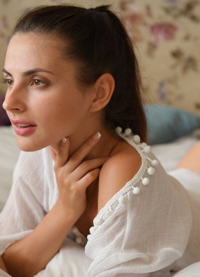 Стройная сексуальная девица выгибается в постели