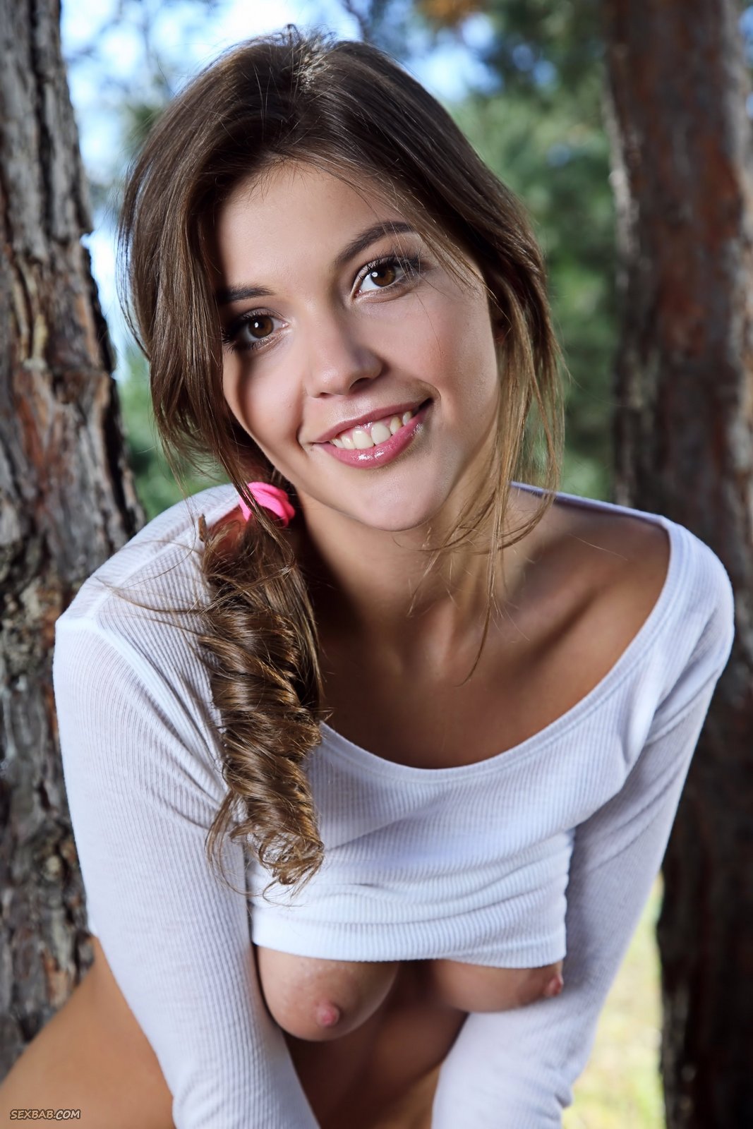 Описание: Гуляя в лесу и страстно обжимаясь с деревьями, развратная детка в коротких джинсовых шортиках возбуждающе медленно стягивает их со своего стройного тела и похотливо вертит красивой подтянутой попкой перед камерой. Раздевшись до гола, сексуальная куколка с натуральными титями ложится на землю в максимально раскрытой позе и с удовольствием демонстрирует нам свою бритую промежность с подстриженным волосатым лобком крупным планом.