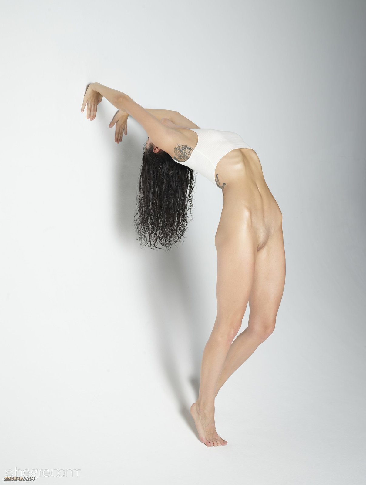 Описание: Находясь в фото студии, худощавая высокая модель без трусиков ощущает возбуждение и медленно стягивает с себя белую майку. Наслаждаясь, сексуальная стройняшка особенно подробно демонстрирует бритую письку с гладким лобком и маленькие торчащие сиськи.