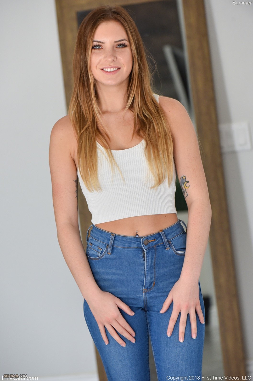 Девушка в кардигане на голое тело сняла джинсы