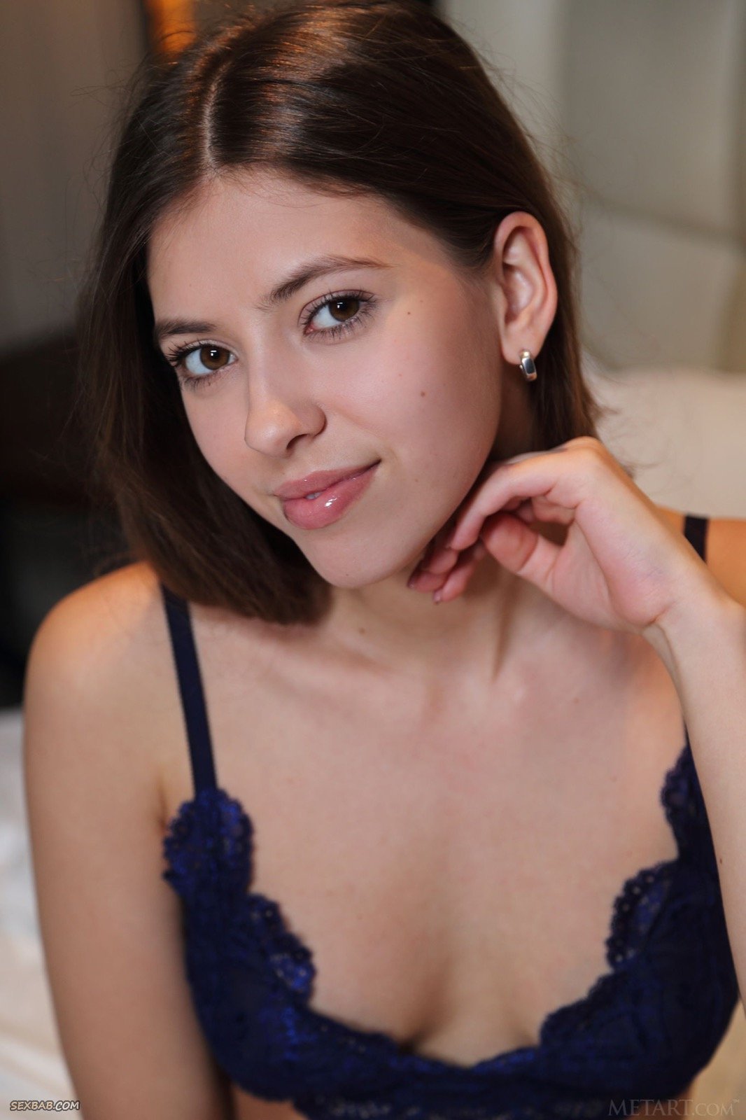 Описание: Сидя на кровати и мило улыбаясь нам сквозь объектив фотокамеры, сексуальная девица с очень сочной на вид попой эротично стягивает с себя кружевные трусики и лифчик. В процессе раздевания стройняшка старательно меняла ракурсы и засвечивала маленькие торчащие сиськи и немного бритую письку.