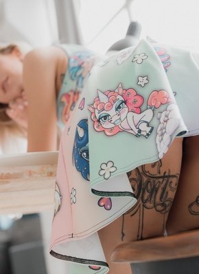 Описание: Молодая милая девка в татуировках по всему телу позирует перед камерой и эротично задирает юбку, после чего акцентирует наше внимание на её белых трусиках. Получая от фотографа ценные указания, сексуальная блондинка порой показывала маленькие сиськи и возбуждающую письку с упругими ягодицами, делая это очень соблазнительно и страстно.