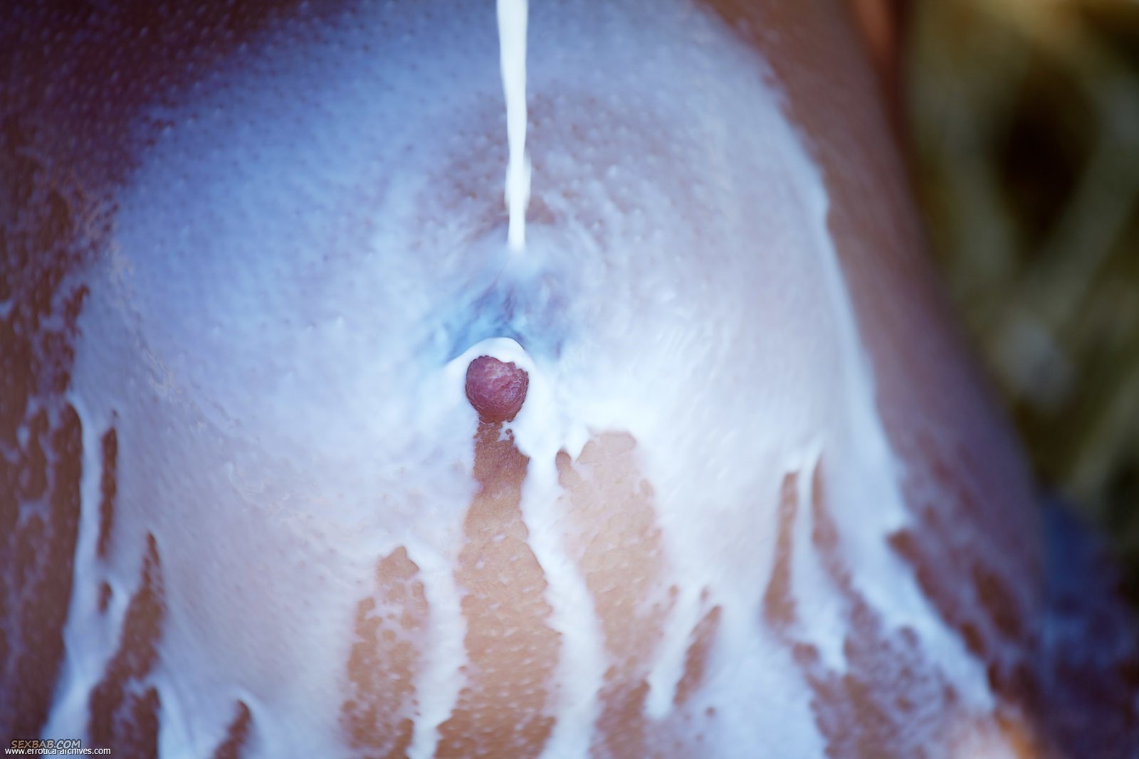Описание: Устроившись на стоге сена, молоденькая голубоглазая блондинка с завязанными волосами в косички, медленно сняв платье и трусики, эротично обливается молоком. И как только прохладная белая жидкость начала стекать по натуральных сиськах и гладко выбритой письке с плоским животиком, ощущая удовольствие, девушка постаралась максимально раздвинуть промежность.