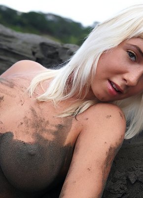Сексуальная блондинка измазалась в песке