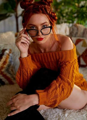 Рыженькая красавица в очках и чулках