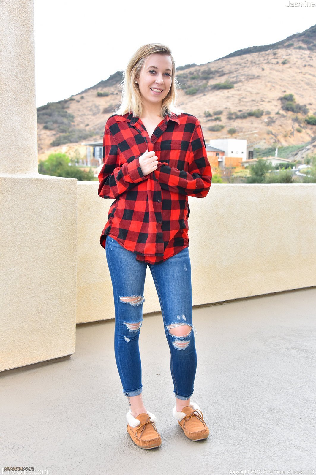 Девка сняла рубашку и джинсы показав бритую письку