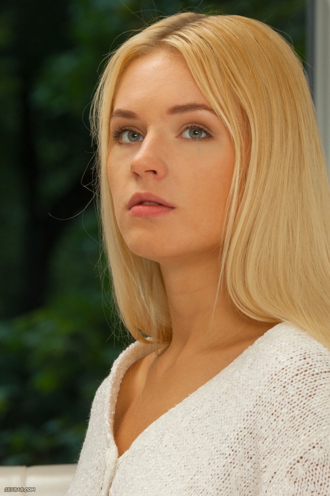 Описание: Расположившись на кровати, сексуальная блондинка с красивой внешностью в процессе медленно снимает кружевные белые трусики и кофту. Оголившись, стройная девушка с натуральной грудью прогибается раком и раздвигает промежность сидя на коленках, позволяя нам увидеть бритую письку и упругую попку.