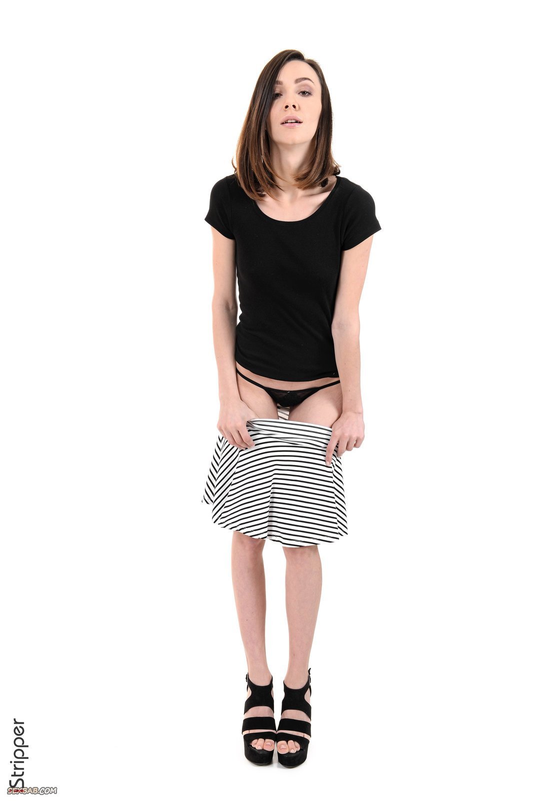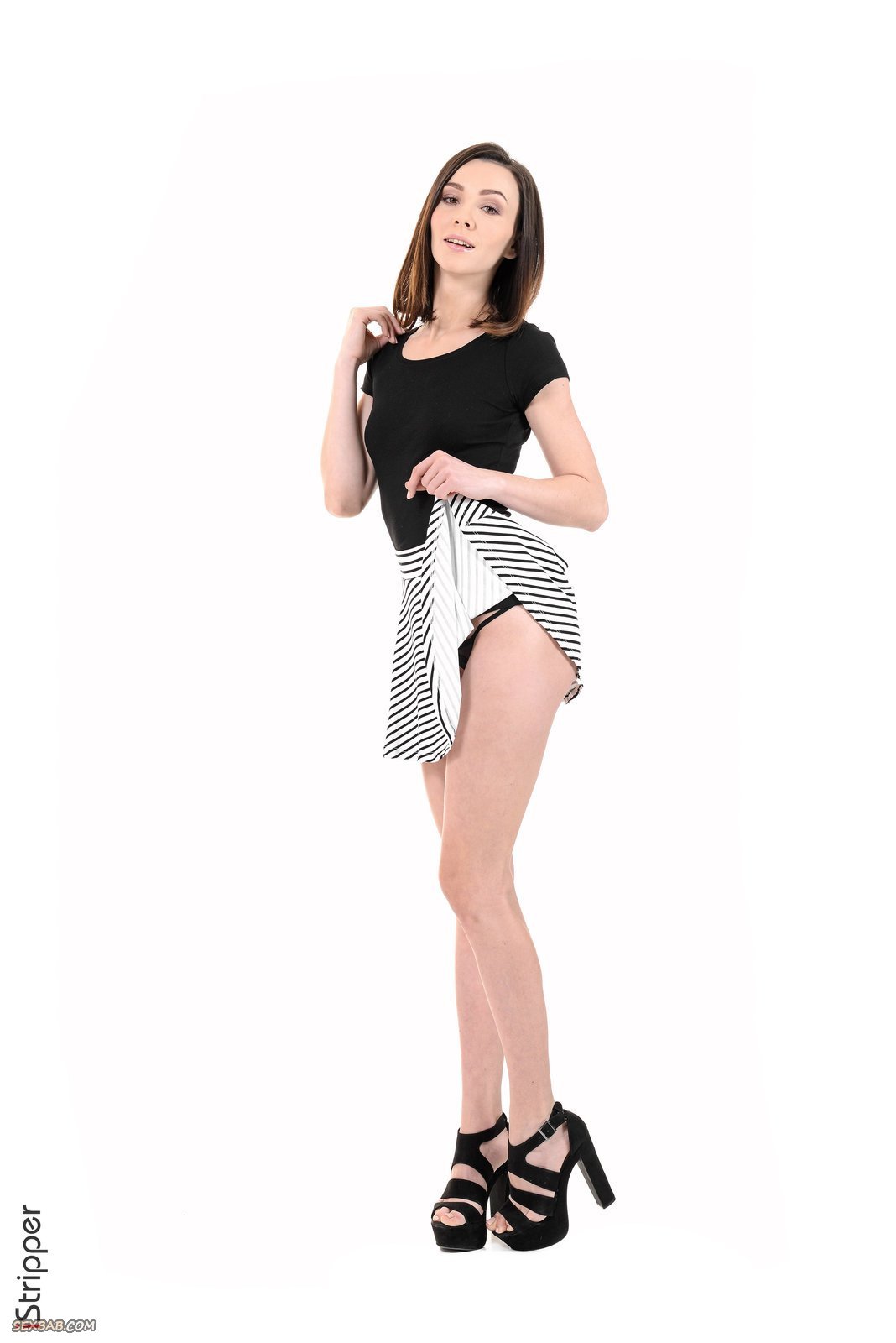 Описание: Привлекательная и достаточно сексуальная модель со стройной фигурой, начав позировать в стрингах и юбке, уже через несколько минут полностью оголилась на камеру. Первым делом очаровательная девушка выставляет на показ сиськи маленьких размеров, а присев на попочку и раздвинув ножки засвечивает крупным планом гладко выбритую письку.