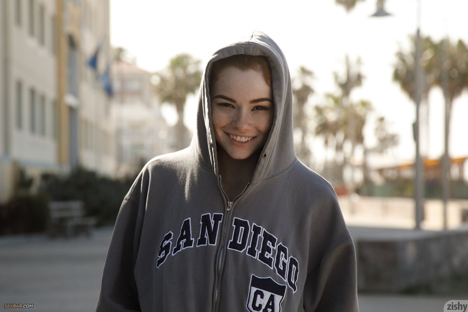 Описание: Оказавшись на пляже, достаточно сексуальная рыженькая девушка в веснушках на лице и руках старается скинуть по максимуму вещей и попозировать в разных позициях. Чаще всего молоденькая крошка располагается на песке, немного оттопыривая топик и засвечивая сочную натуральную грудь, при этом раздвигая промежность в шортиках.