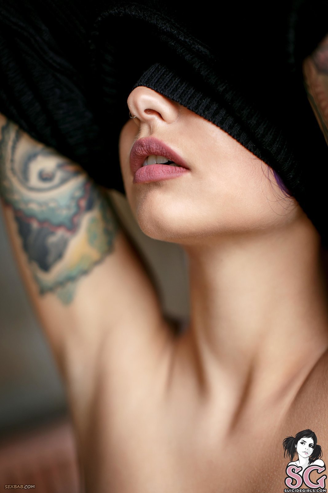 Обнажённая неформалка с татушками на теле