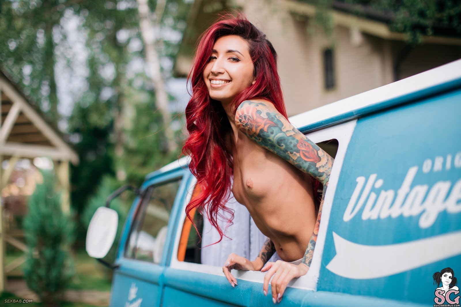 Описание: Устроив соблазнительную фото сессию у старого фольксвагена во дворе, неординарная девушка с красными волосами и татуировками, хочет похвастаться своими прелестями и снимает с себя джинсы с трусиками. Мило улыбаясь через объектив, сексуальная красавица с небольшой грудью завлекает своего зрителя в сладкие объятия нежных грёз.