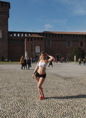 Описание: Симпатичная и весьма сексуальная дамочка с широкими бедрами и крашенными светлыми волосами эротично прогуливается на улице и периодически задирает свою длинную юбку. Поддаваясь своему игривому настроению, модель порой засвечивала натуральные сиськи и бритую письку с пухлыми половыми губками.