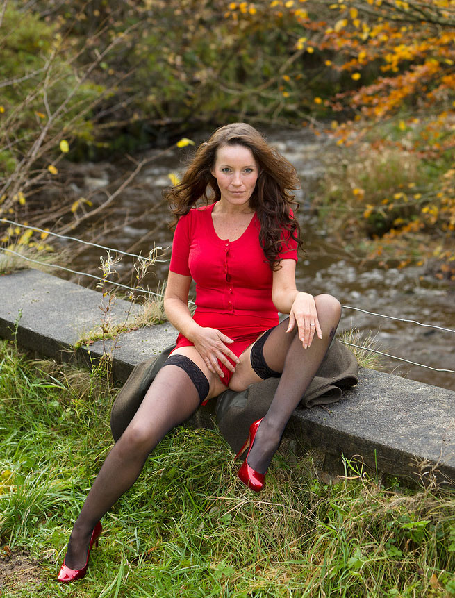 Первая встреча и прогулка с дамой из мейла Аллой получилась на славу! Чувственная и очень красивая женщина в красном оказалась озорной и без комплексов. Она легко разделась, позируя, соблазняя всех окружающих… Простой поход по осеннему парку закончился эротической фотосессий и бурным романом!