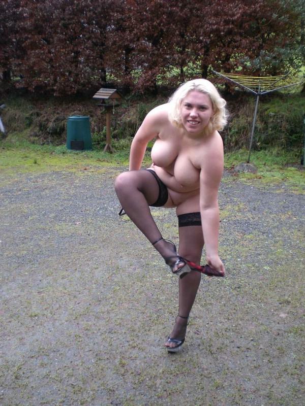Частные фото голой жены в чулках гуляющей по улице